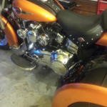 Here is pic of LoveJugs I bought last week,installed on my 2016 HD Heritage Softail with a MotorTrike conversion.  I think they look great and have kept my engine and right leg much cooler.   Thanks! – Van M, Milford, Ohio